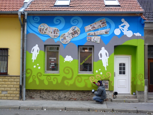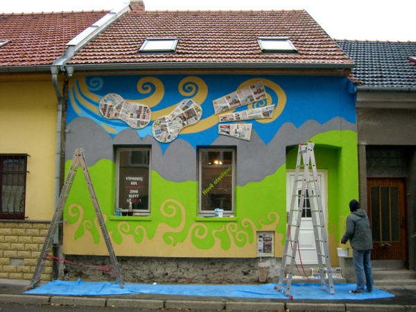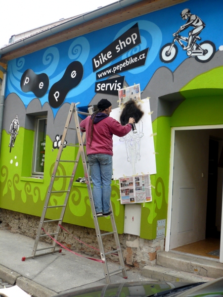 Umělecké ztvárnění fasády PE-PE bike shopu v Brně - návrhy a relizace:Prezentace výtvarných a jiných počinů