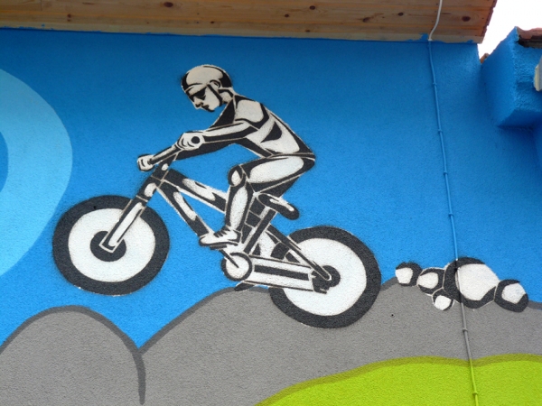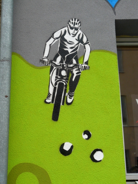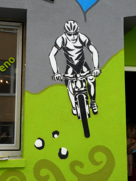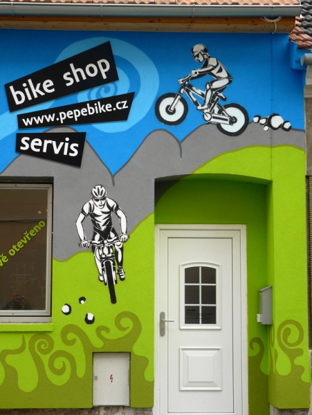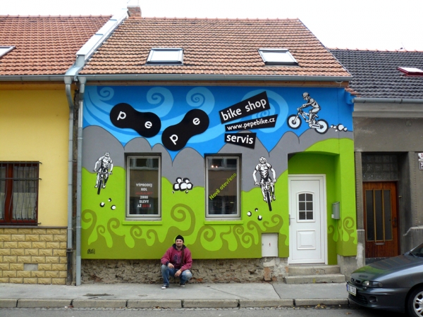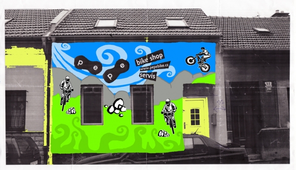 Umělecké ztvárnění fasády PE-PE bike shopu v Brně - návrhy a relizace