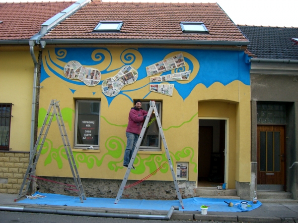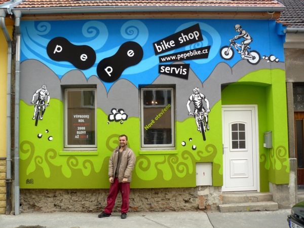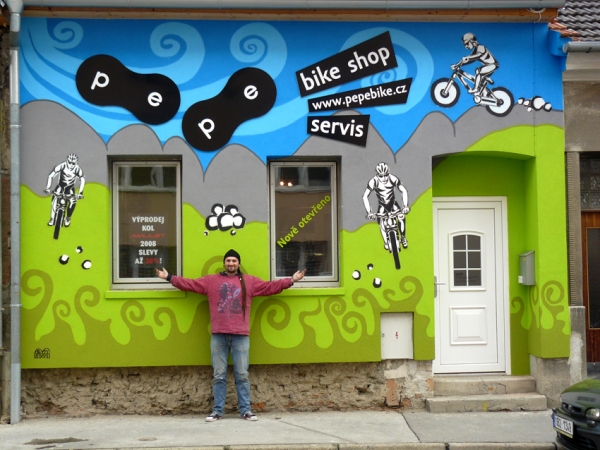 Umělecké ztvárnění fasády PE-PE bike shopu v Brně - návrhy a relizace:Prezentace výtvarných a jiných počinů